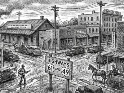 Entender a cidade de Clarksdale é essencial para compreender o blues como resultado direto de um território histórico específico. O blues não surge de forma abstrata: ele se forma em lugares concretos, marcados por plantations, sharecropping, segregação racial e ausência de mobilidade social. Clarksdale sintetiza o Delta do Mississippi, região onde essas condições se combinam de maneira intensa, transformando experiência social em linguagem musical. Compreender Clarksdale é compreender o blues como música enraizada no espaço, no trabalho e na vida cotidiana.